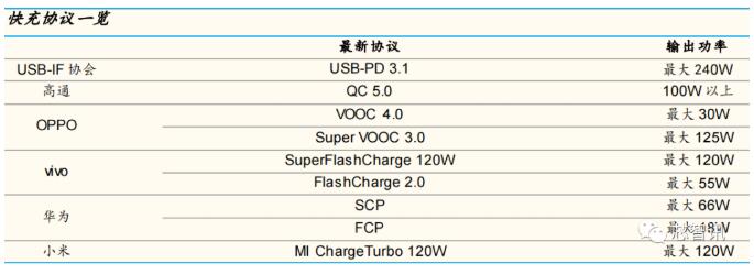 根據國金證券的測算,2018年“華米OV”的快充滲透率為52%,2019就提升到了62%。其中 20W~30W 的快充滲透率,2018年為22%,2019年達28%;30W 以上的快充滲透率,2018年僅1%,2019年就快速提升到了11%。對應 2018、2019年手機充電器平均功率為13.8W、17.8W,2019年同比增長29%,其中華為、小米2019年標配充電器平均功率分別為20.6W、22.6W,同比分別增長44%、75%。