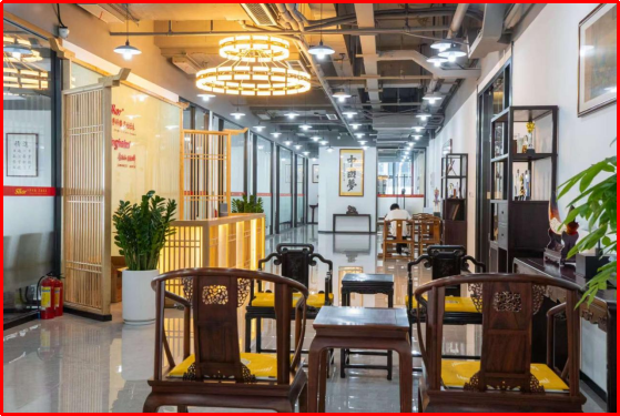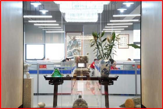 薩科微和金航標(biāo)采用生態(tài)化、矩陣化、層次化方法論,將公司的業(yè)務(wù)分為不同的板塊和部門,并通過有機的協(xié)作和管理,實現(xiàn)了高效的運營和發(fā)展。宋仕強先生說道,在繁忙的工作中要有靜下來的時間與空間,靜才能思,思可生智慧。當(dāng)東方韻致邂逅極簡詩意,“靜”成為室內(nèi)設(shè)計的核心。細(xì)微處見真章,宋式美學(xué)元素(飛檐、花格、菱花紋、冰裂格等)嵌入各處,還有故宮博物院復(fù)刻的宋代王希孟的名畫《千里江山圖》,一幅長達(dá)12米的卷軸分為6個部分用紅木框裝裱起來環(huán)繞整層樓核心筒懸掛起來,也起到了人流動線按照順時針方向的指引作用,讓辦公空間充滿了宋代文人的靈感和厚重的歷史價值。源自《千里江山圖》的琉璃山形小品,用傳統(tǒng)文化符號激活現(xiàn)代高科技公司的空間基因,給人歷史的靜思和文化的遐想,讓空間充滿“簡、雅、靜氣、大氣”之美。明式紅木的案、幾、椅是簡約實用的具象表達(dá),最美佛頭給人瞻仰、仰望的意味,角落的竹子營造鬧中取靜的意境空間,形態(tài)各異的石頭散布營造室外的空間感,生機盎然的綠煥發(fā)空間活力,這些都讓時間、空間與人的連接自然形成。