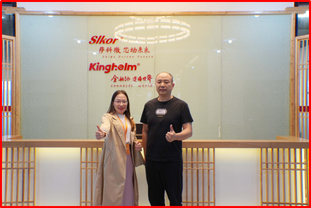 金航標(biāo)電子公司2025年新總部前臺 近年來,從華強(qiáng)北成長起來的金航標(biāo)kinghelm(www.kinghelm.net)電子和薩科